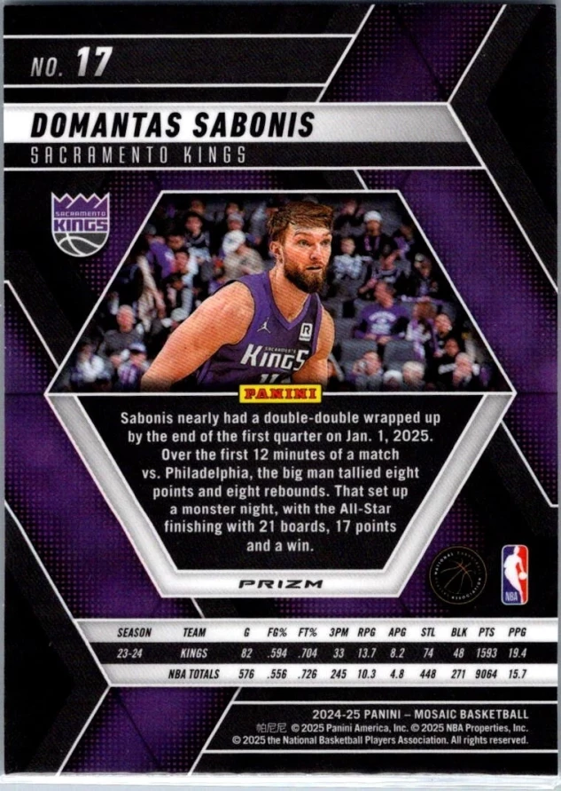 This is a nice example of a 2024-25 Panini Mosaic #17 Domantas Sabonis Mosaic