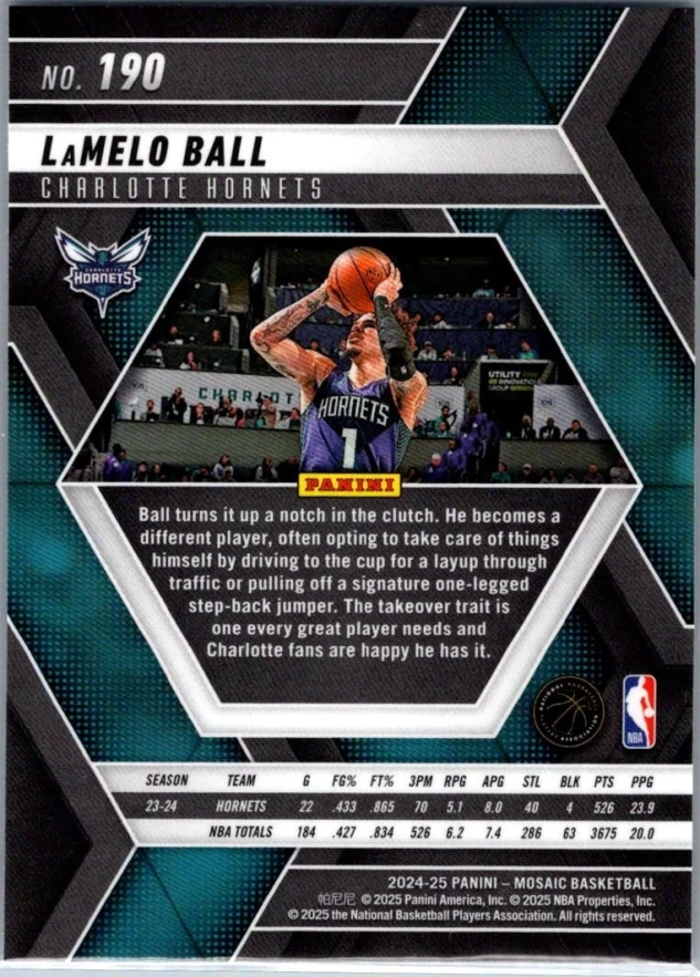 This is a nice example of a 2024-25 Panini Mosaic #190 LaMelo Ball