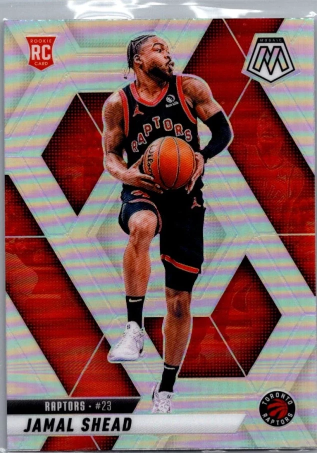 This is a nice example of a 2024-25 Panini Mosaic #201 Jamal Shead Silver