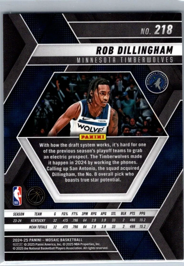 This is a nice example of a 2024-25 Panini Mosaic #218 Rob Dillingham