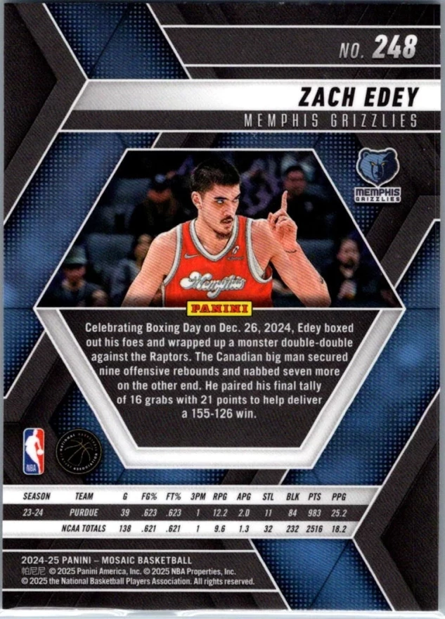 This is a nice example of a 2024-25 Panini Mosaic #248 Zach Edey
