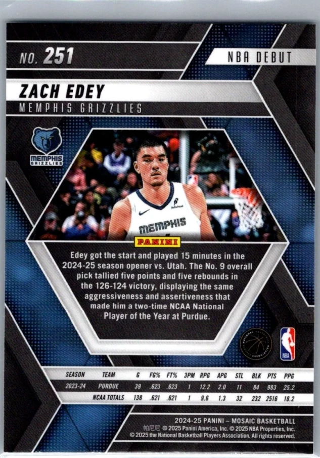 This is a nice example of a 2024-25 Panini Mosaic #251 Zach Edey