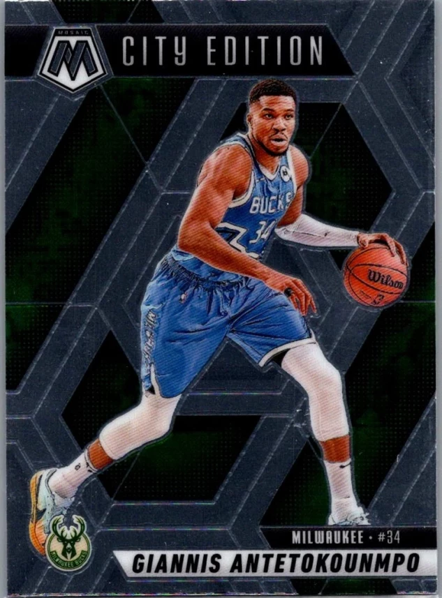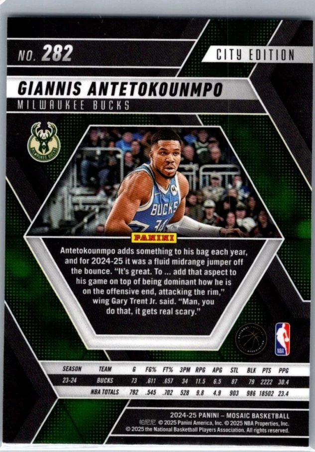 This is a nice example of a 2024-25 Panini Mosaic #282 Giannis Antetokounmpo