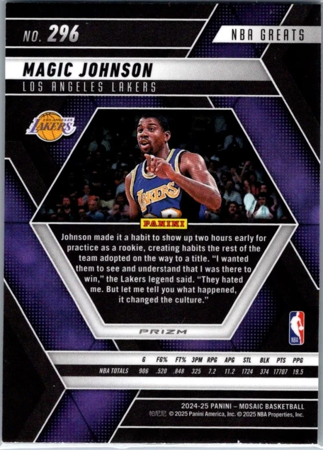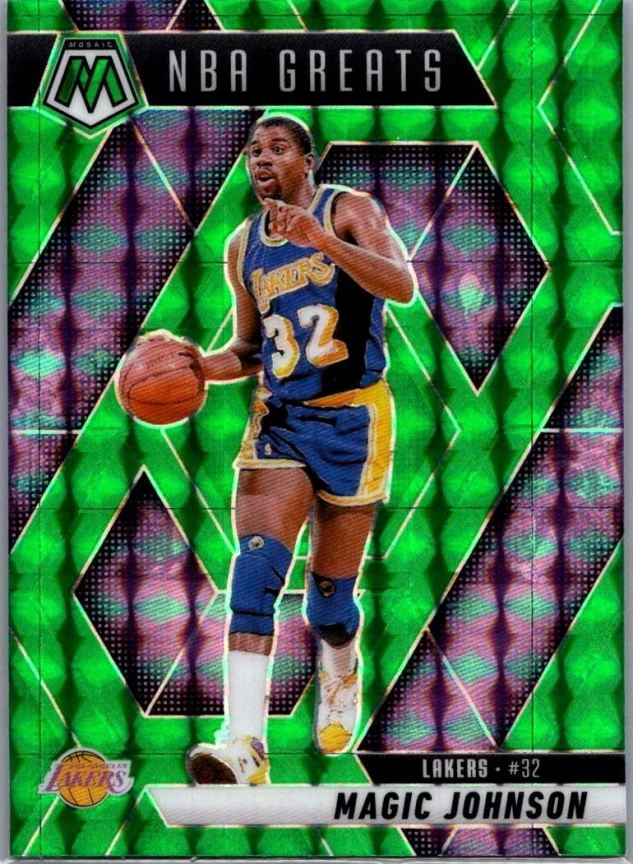 This is a nice example of a 2024-25 Panini Mosaic #296 Magic Johnson Green Mosaic