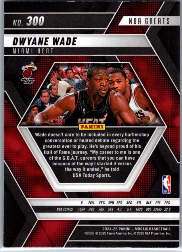 This is a nice example of a 2024-25 Panini Mosaic #300 Dwyane Wade