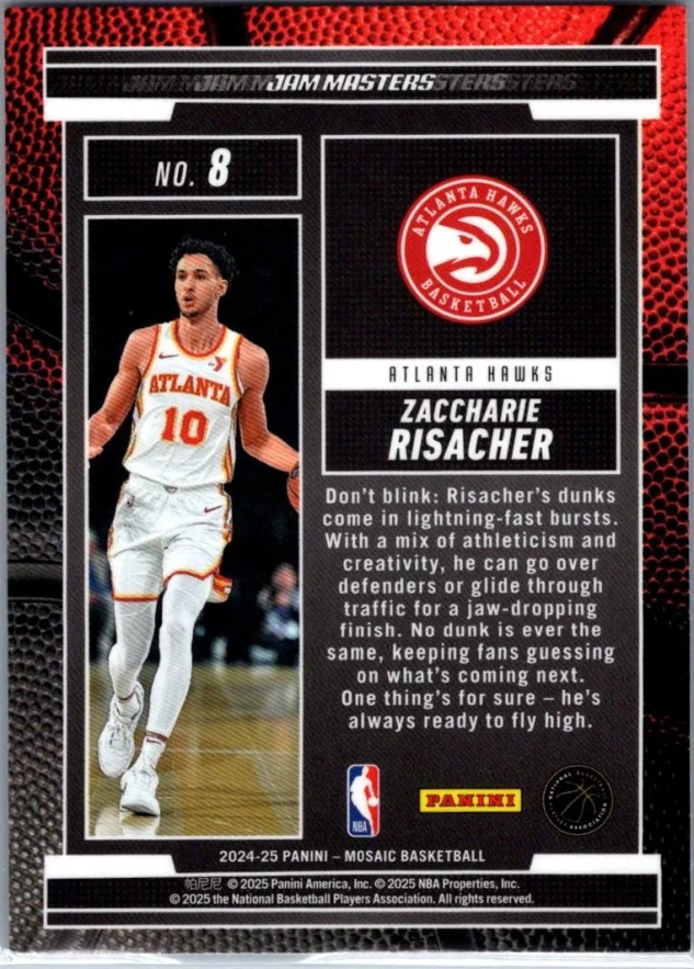This is a nice example of a 2024-25 Panini Mosaic #8 Zaccharie Risacher Jam Masters