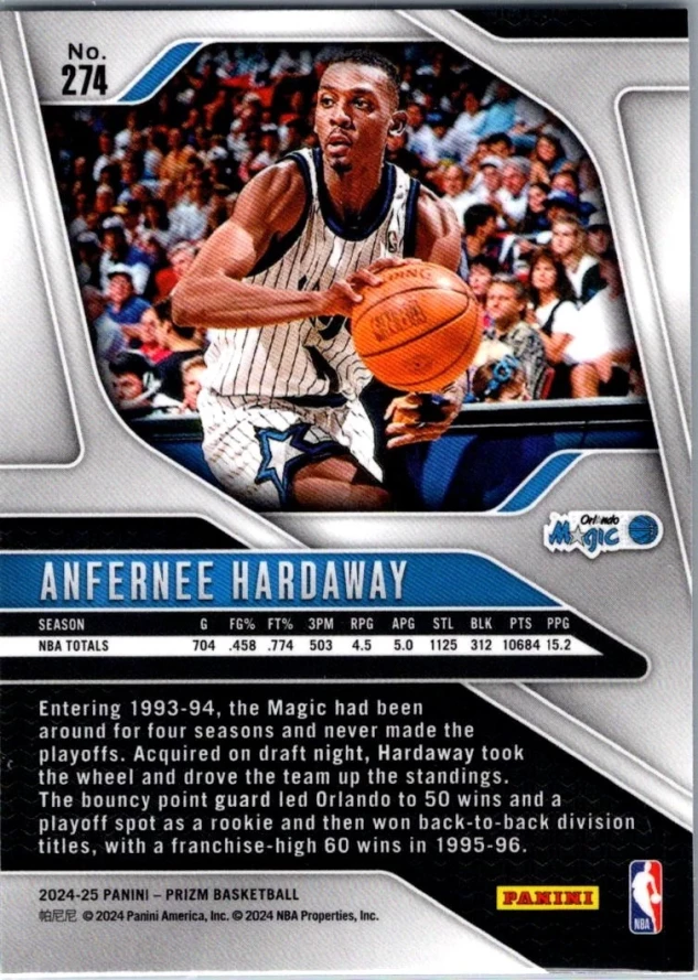 This is a nice example of a 2024-25 Panini Prizm #274 Anfernee Hardaway