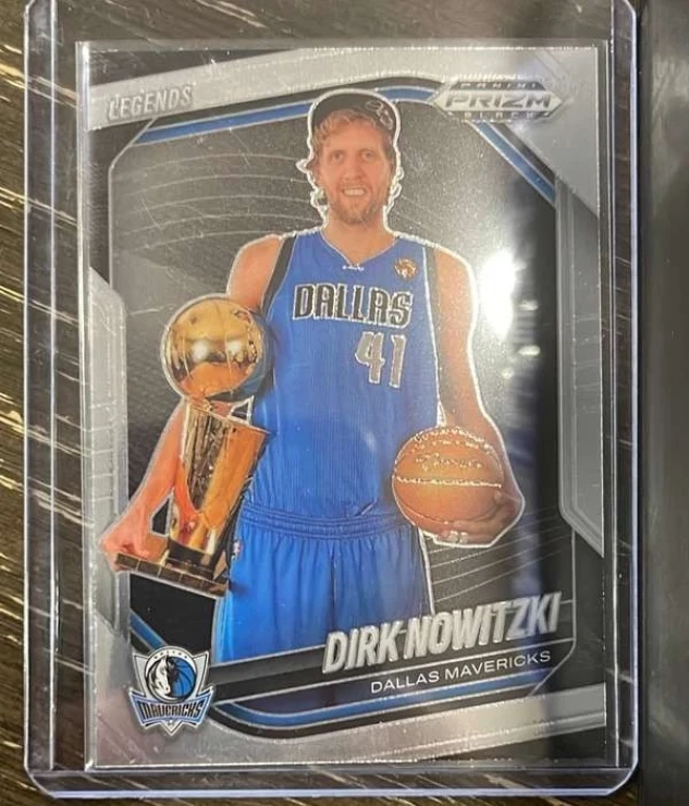 This is a nice example of a 2024-25 Panini Prizm Black #253 Dirk Nowitzki