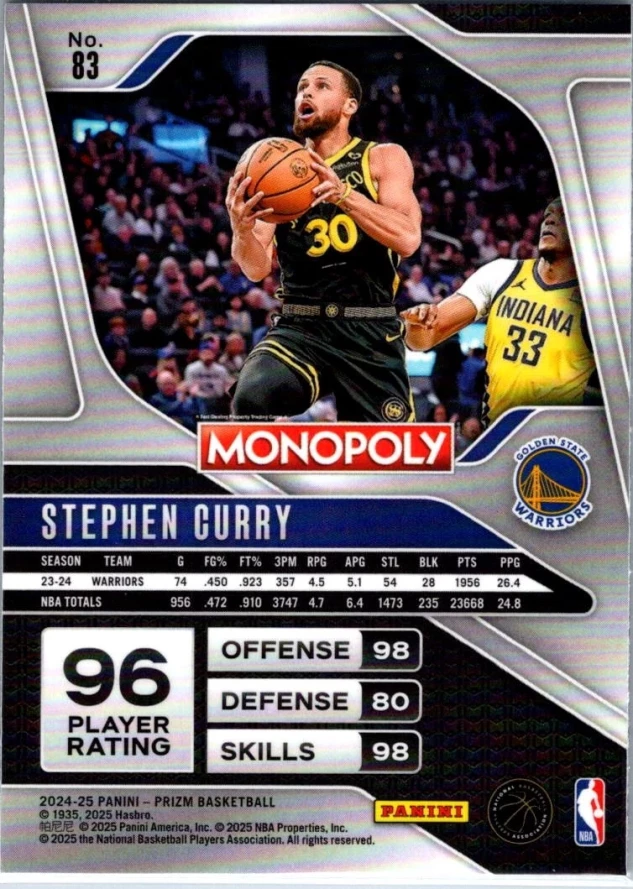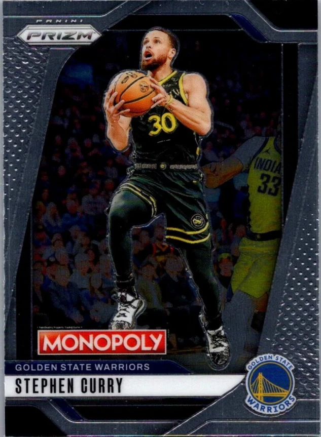 This is a nice example of a 2024-25 Panini Prizm Monopoly #83 Stephen Curry