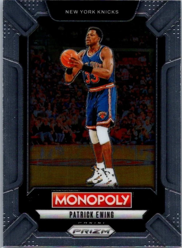 This is a nice example of a 2024-25 Panini Prizm Monopoly #LEG8 Patrick Ewing Legends