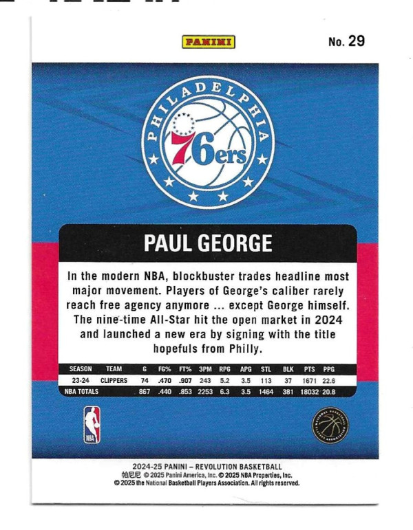 2024-25 PANINI REVOLUTION #29 PAUL GEORGE