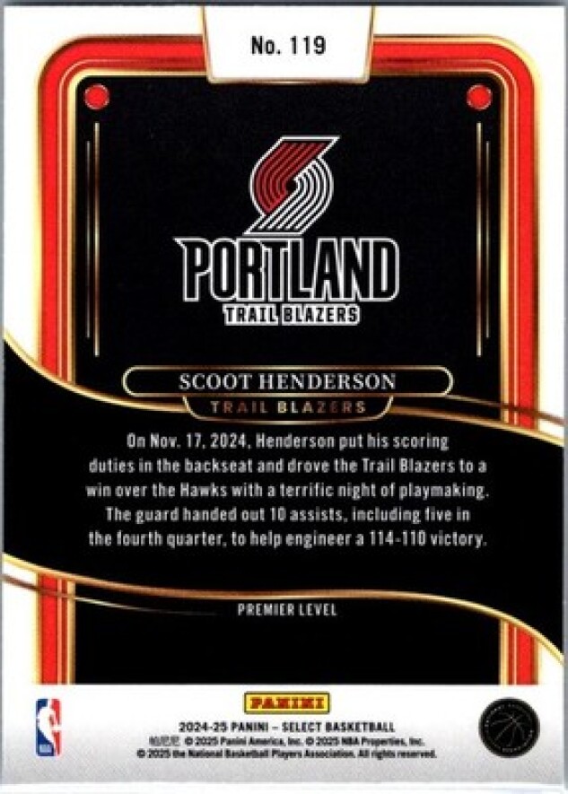 This is a nice example of a 2024-25 Panini Select #119 Scoot Henderson