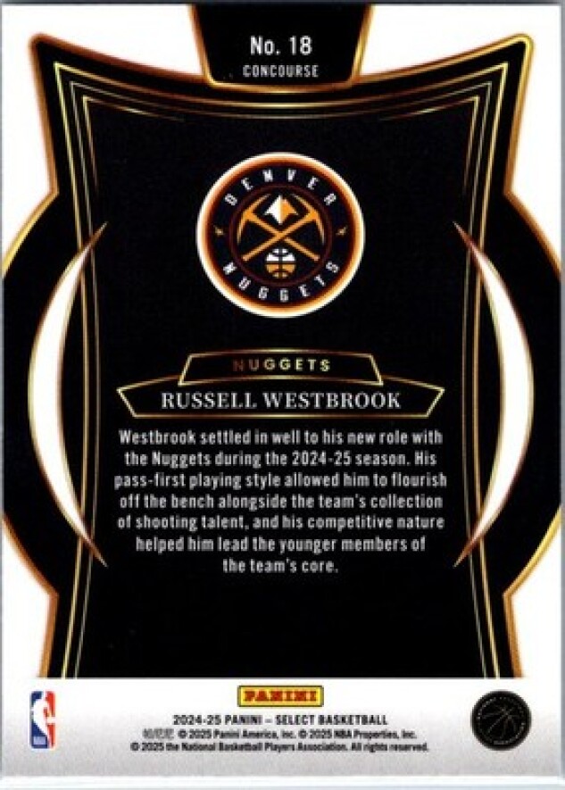 This is a nice example of a 2024-25 Panini Select #18 Russell Westbrook