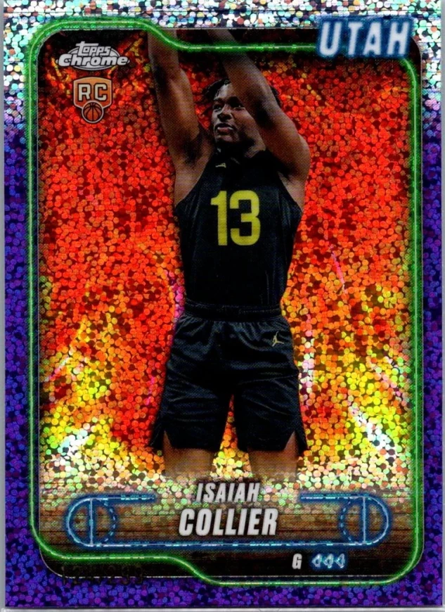 This is a nice example of a 2024-25 Topps Chrome - Purple Speckle Refractor #112 Isaiah Collier