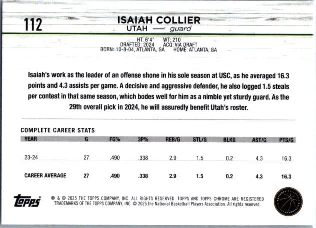 In 2024 Isaiah Collier played for the Utah Jazz.