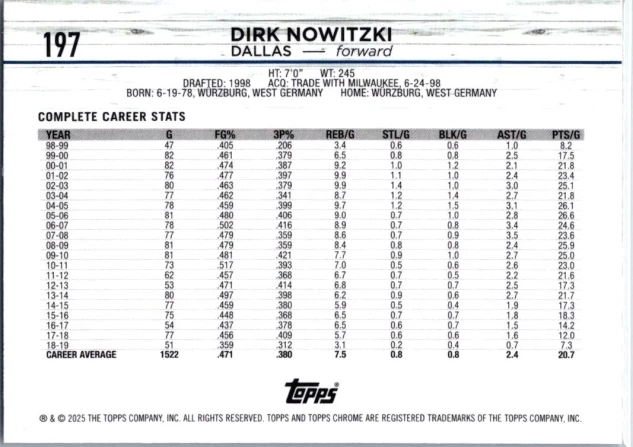 This is a nice example of a 2024-25 Topps Chrome Sapphire #197 Dirk Nowitzki