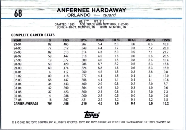 2024-25 Topps Chrome Sapphire #68 Anfernee Hardaway