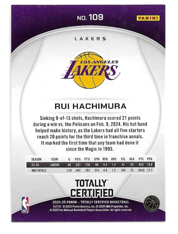 2024-25 TOTALLY CERTIFIED #109 RUI HACHIMURA