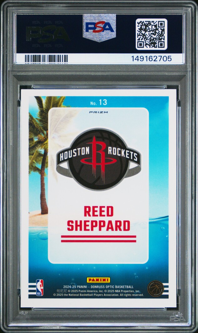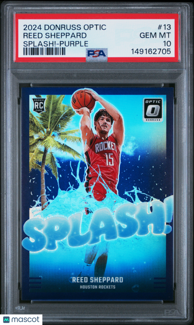 You are purchasing a 2024 Donruss Optic Splash! Reed Sheppard #13 Purple RC PSA 10. You will receive the exact item in the photographs. Thank you for looking.