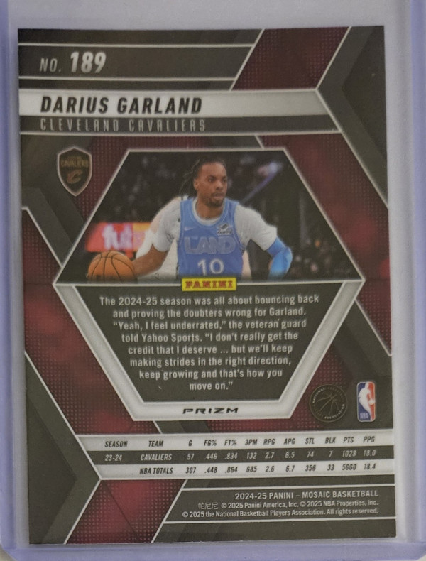 2024 Mosaic Darius Garland #189. *Card will ship in protective sleeves and a cardboard box, I do not ship using PWE or BM.