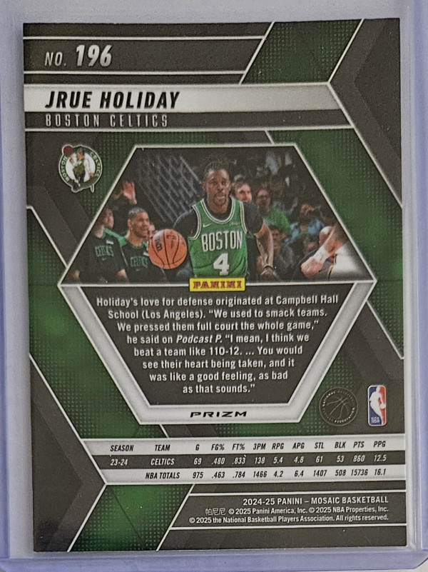 2024 Mosaic Jrue Holiday #196. *Card will ship in protective sleeves and a cardboard box, I do not ship using PWE or BM.