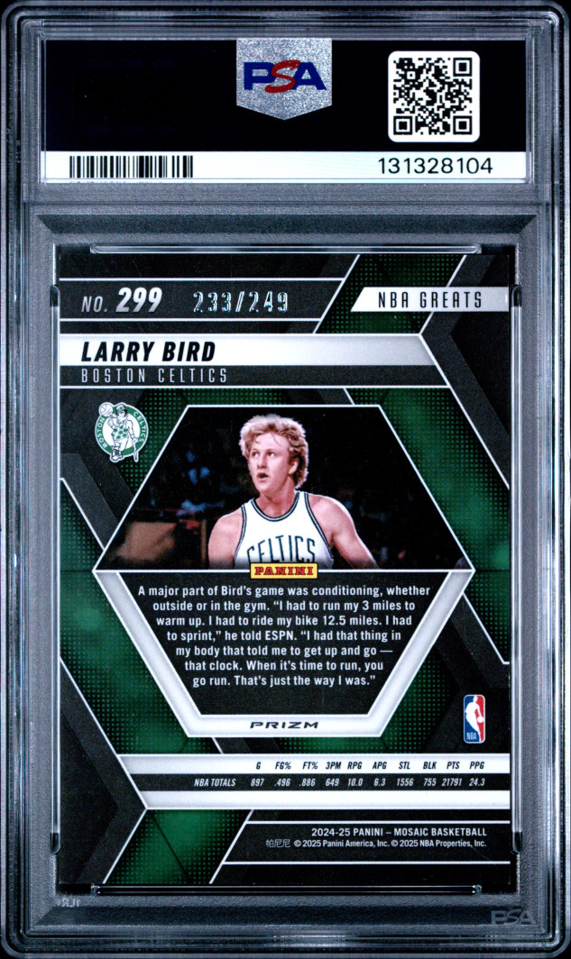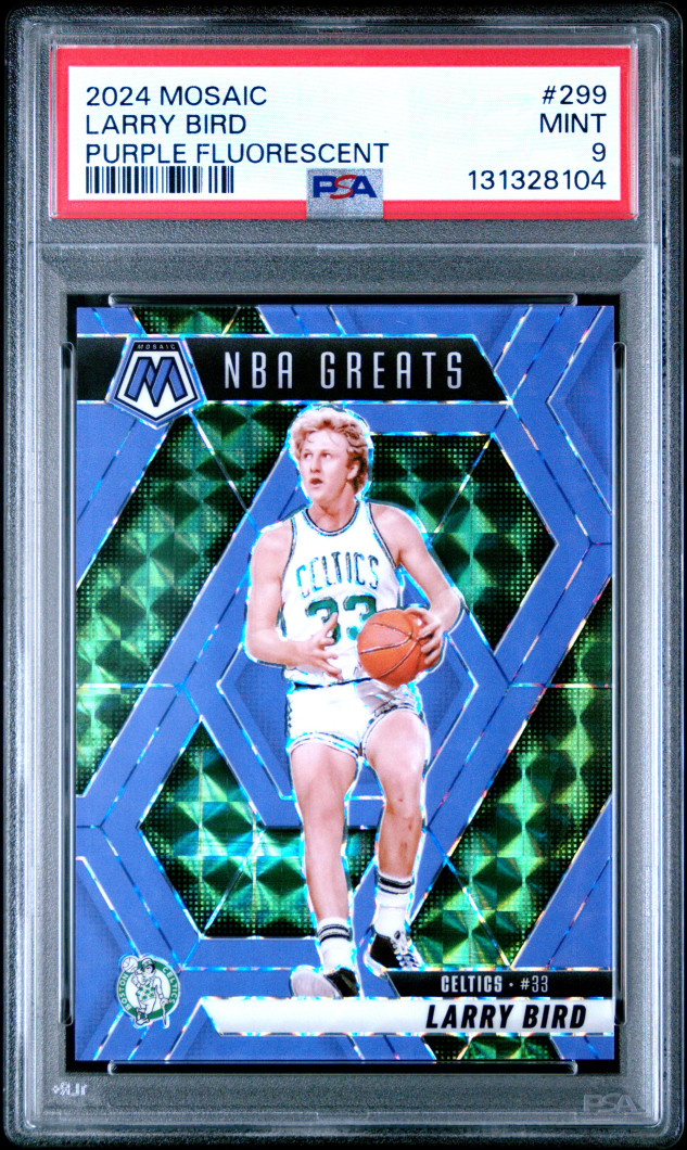 2024 Panini Mosaic Larry Bird Purple Fluorescent NBA Greats /249 PSA 9