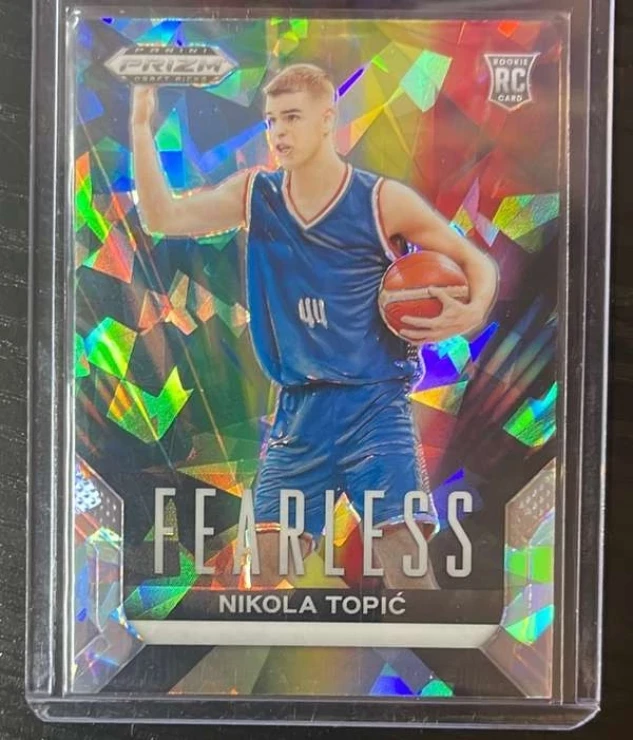 This is a nice example of a 2024 Panini Prizm Draft Picks - Fearless Prizms Ice #12 Nikola Topic