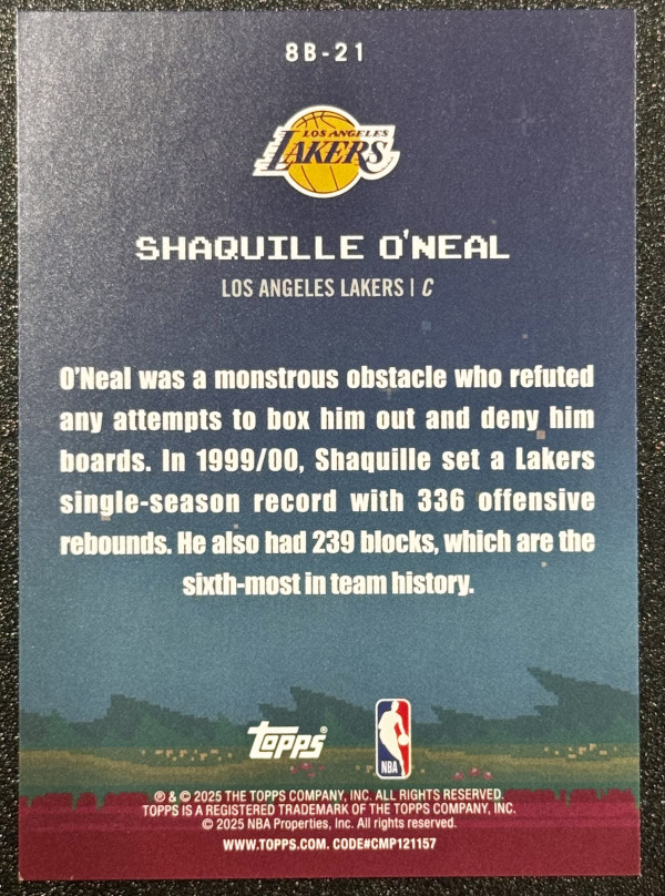 You are purchasing a 2025 2005-06 Topps 8-Bit Ballers Shaquille O'Neal #8B-21 - Los Angeles Lakers. You will receive the exact item in the photographs. Thank you for looking.