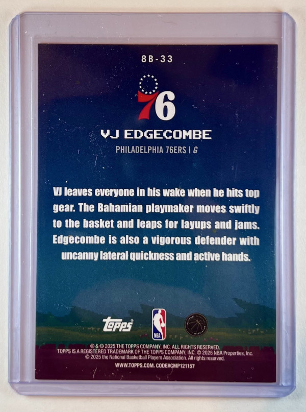 2025-26 Topps - 8-Bit Ballers VJ Edgecombe #8B-33 Holofoil (RC). Near mint to mint condition.
