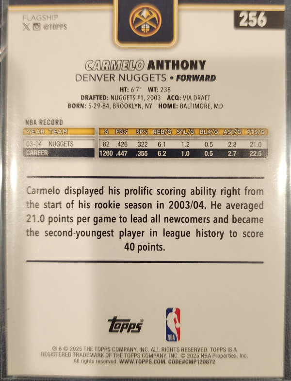 2025-26 Topps Basketball Carmelo Anthony Purple Foil /250