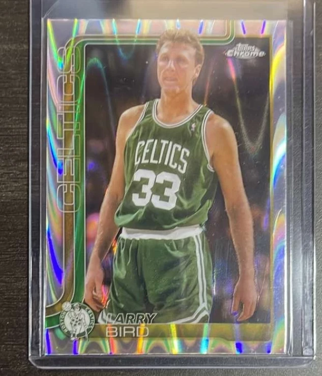 This is a nice example of a 2025-26 Topps Chrome - RayWave Refractor #243 Larry Bird