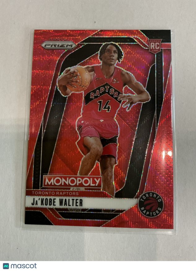 Don't miss your chance to own this hot 2025 Panini Prizm Monopoly Ja'Kobe Walter #69 Red RC, featuring the rising Toronto Raptors star in his official rookie card! This eye-catching Red parallel is a must-have for NBA collectors and Ja'Kobe Walter fans, offering strong investment potential as he makes waves in the league.