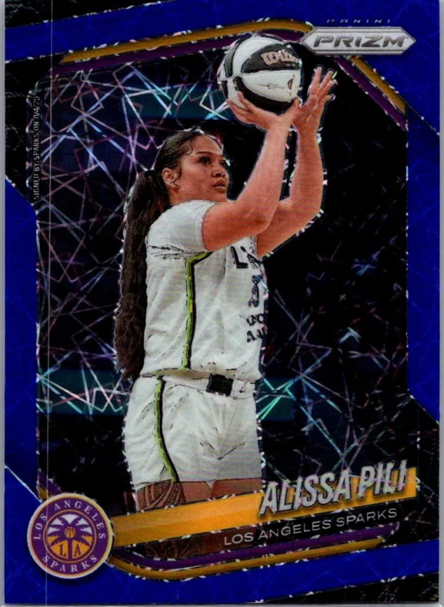 This is a nice example of a 2025 Panini Prizm WNBA #78 Alissa Pili Blue Velocity Prizms