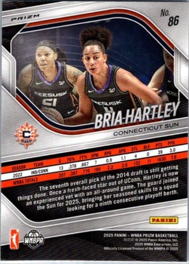This is a nice example of a 2025 Panini Prizm WNBA #86 Bria Hartley Blue Velocity Prizms