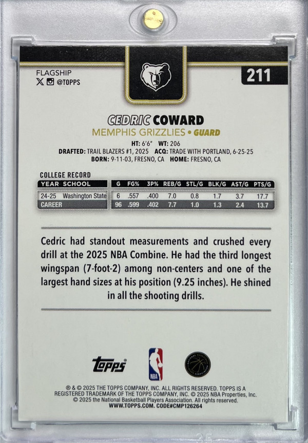 2025 Topps Cedric Coward Blackout Black Friday RC
