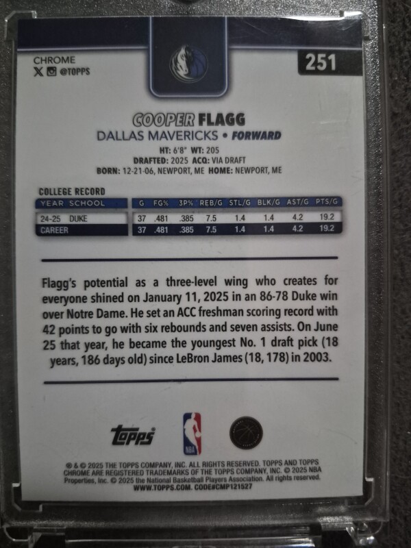 2025 Topps Chrome Cooper Flagg Rookie Refractor