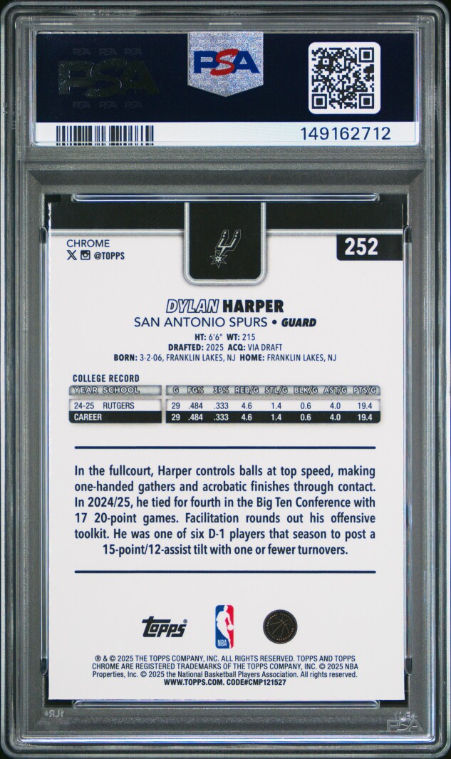You are purchasing a 2025 Topps Chrome Dylan Harper #252 RC PSA 9. You will receive the exact item in the photographs. Thank you for looking.