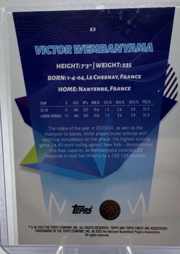 2025 Topps Finest Victor Wembanyama Purple /150 Refractor #83
