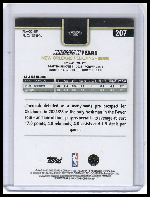 2025 Topps Jeremiah Fears Blackout Shimmer /99