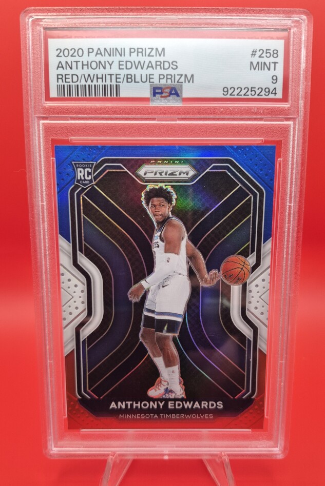ANTHONY EDWARDS PRIZM ROOKIE RED WHITE AND BLUE PSA 9