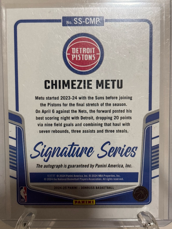 Chimezie Metu SS-CMP 2024-25 Panini Donruss Signature Series Green Laser Auto 66/75