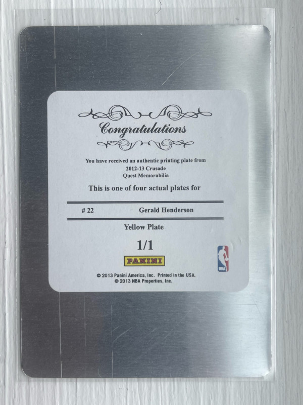 Gerald Henderson 2012-13 Panini Crusade Quest Yellow Priniting Plate 1/1