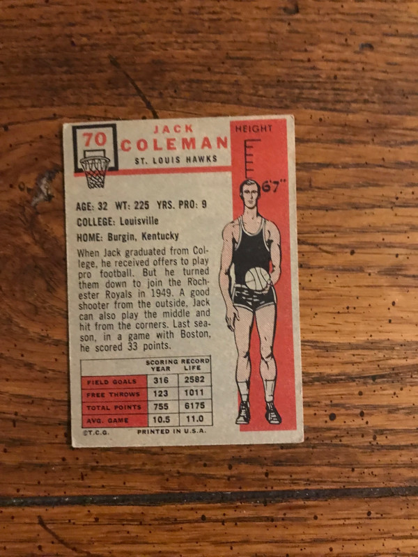 Jack Coleman 1957 Topps Basketball Cards. Very Good Condition.