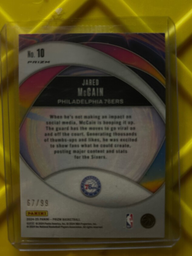 Jared McCain 2024-25 Panini Prizm /99 Blue Pulsar Instant Impact RC 76ers #10