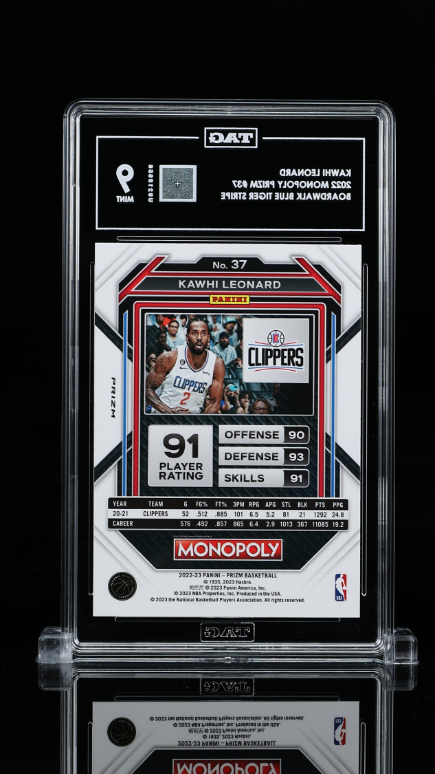 Kawhi Leonard 2022 Panini Monopoly Tiger Boardwalk BluePrizm #37 Boardwalk Blue Tiger Stripe Prizm