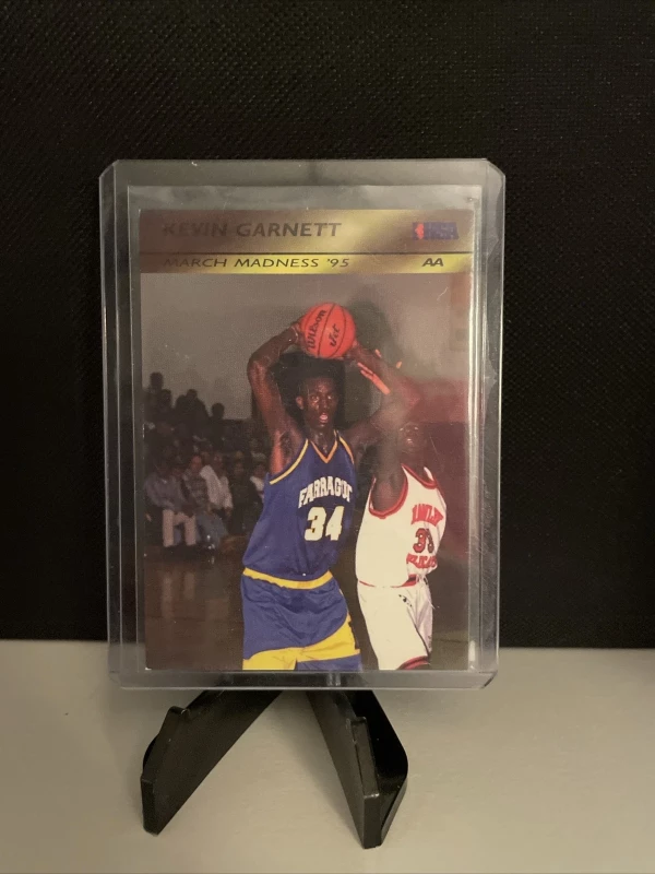 This is a rare and limited edition Kevin Garnett trading card from the 1994 IHSA Boys AA set. The card features a vibrant image of Garnett, with his name and card number clearly displayed. It is made from high-quality card stock and is an original, not a licensed reprint.