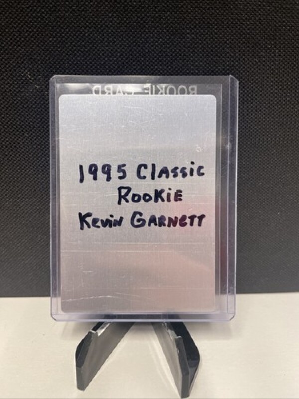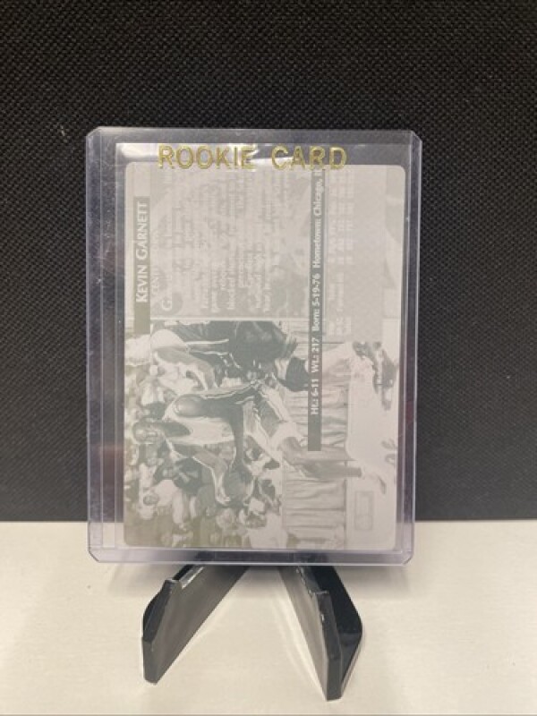 Kevin Garnett 1995 Classic Rookies #5 Printing Plate is a rare NBA trading card featuring the player in his Minnesota Timberwolves uniform. This original printing plate card is manufactured by Classic Games, Inc. as part of the 1995 set. It is made of card stock and is a unique parallel/variety card, making it a highly collectible item for basketball fans.