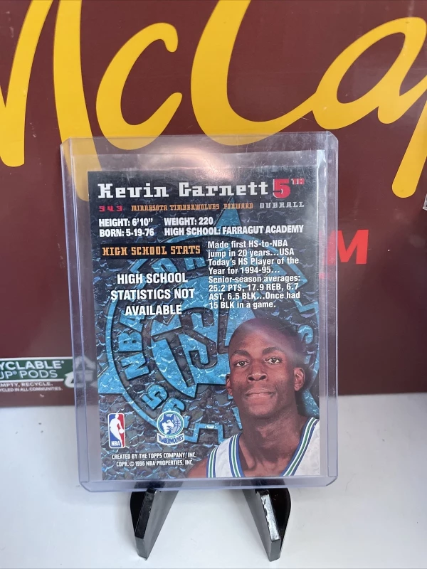 For the basketball fans out there, check out this 1995 Topps Stadium Club trading card featuring Kevin Garnett of the Minnesota Timberwolves. This original sports trading card is made of card stock and is in standard size. The card's design is a base parallel variety, with the card number being 343.