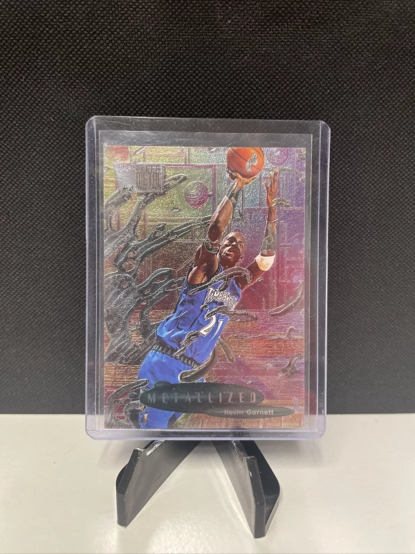 Great for collectors or as a gift, this card is standard size and was manufactured in the United States. It is not autographed, but its design is unique and eye-catching with its metalized finish. Don't miss your chance to own a piece of basketball history with this Kevin Garnett trading card.