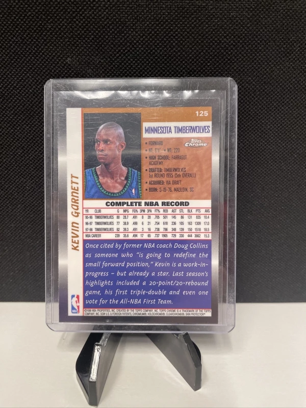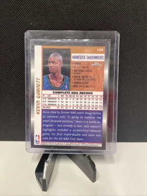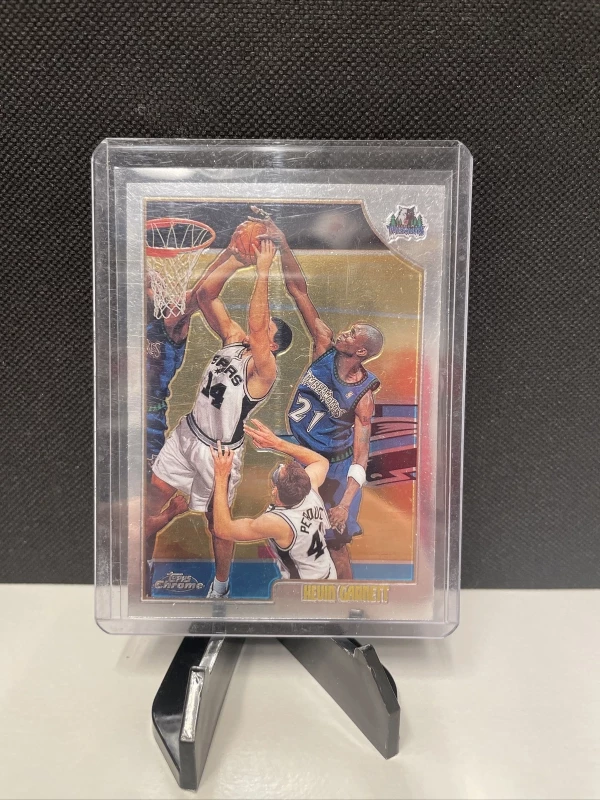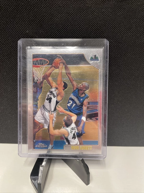 This Kevin Garnett 1998 Topps Chrome #125 trading card is a must-have for any serious basketball card collector. The card features a high-quality chrome finish and showcases Garnett in his Minnesota Timberwolves uniform. The card is an original and not a licensed reprint, and is made from sturdy card stock material.